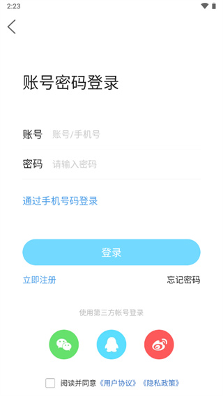 1、打开软件,使用QQ、微信、微博、手机号等方式登入;