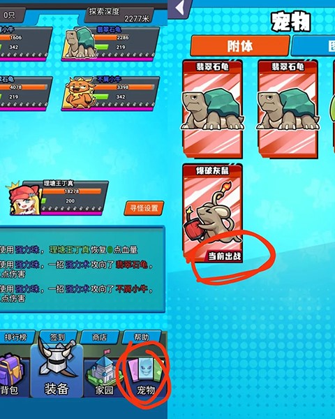 4、右下角宠物,可以把宠物附体出战,宠物属性会附体角色身上,宠物品质越高,属性越好。