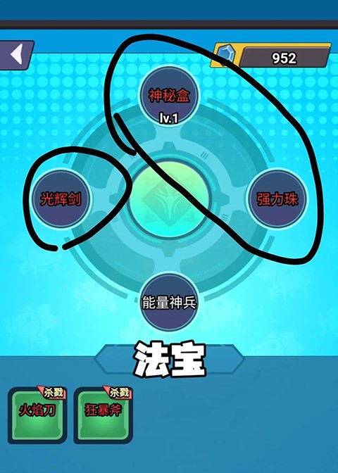 7、法宝可以选择新手礼包送的,光辉剑好像是500米的新手礼包,其他俩是2000米的。