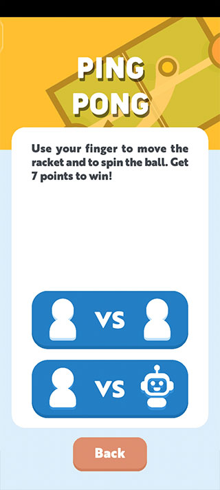 2、以乒乓球游戏为例,人机模式和智能机器人对战,双人模式可以和好友进行游戏。