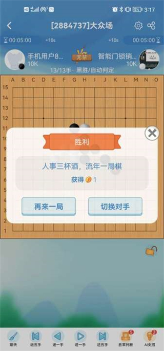 除此之外,App里还有观战功能,可以看看高手们是怎么下棋的,挺长见识的。如果你是新手,也可以先从大众场开始练习,熟悉规则之后再挑战更高阶的对手。