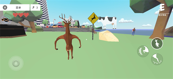 玩家们的鹿一共有3个心,被警察追杀的时候也只会慢慢磨掉你的血,但是被考拉这些打BOSS打倒是一击毙命的。