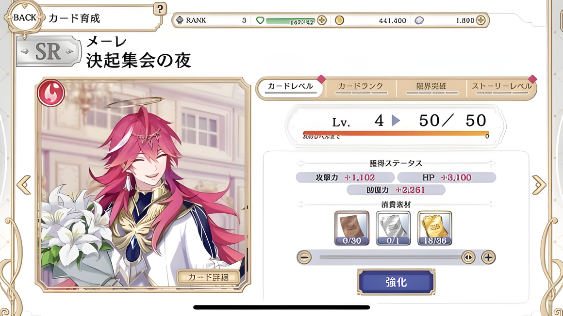 为了在前期高效推进,强化主副角色的卡牌等级。解决谜题就可以获得卡牌经验值,但使用卡牌经验书,可以一次性强化所有卡牌经验值,轻松提升属性。