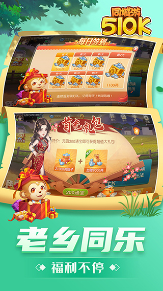 游戏里还有各种福利活动,每天登录就能领奖励,任务完成还能拿更多东西,玩起来 totally 无压力!真人对战也挺刺激的,和全国各地的高手切磋牌技,提升自己的技术。最近更新还加了地域玩法选择,感觉更贴心了。特别是新增每日活动和礼包,让游戏体验更丰富。