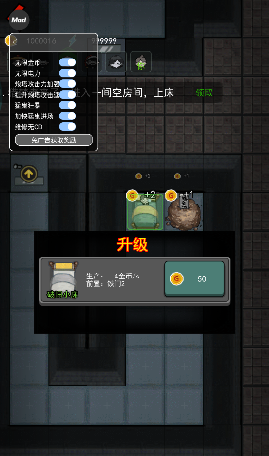 说起抖音上最为火爆的小游戏那便不得不提起猛鬼宿舍这一款策略塔防类游戏啦,该游戏凭借着独创的玩法、新颖的背景剧情、丰富的玩法模式、略带惊悚的游戏音效等优势,备受无数玩家的喜爱。但喜爱归喜爱,许多玩家们被游戏内超高的难度虐的体无完肤,所以为了降低玩家们的游戏难度,本站为大家提供猛鬼宿舍破解版2025最新版,顾名思义该版本是目前最新的破解版本,在此版本中玩家们不但可以享受金币、电力、蜜罐等货币不减反增的功能,而且还可以使用维修无CD、炮塔攻击力加强等修改功能,甚至在全新的版本中玩家们更可以体验最受大家欢迎的伥鬼模式、联机模式哦,以此在线感受不同以往的策略体验!