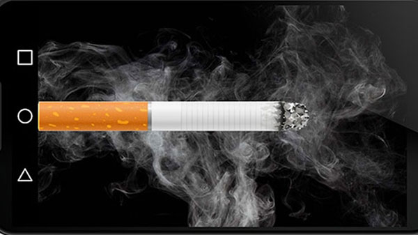 5、好了,你可以假装抽虚拟烟,然后将手机靠近嘴,在麦克风区域吹气。(首先需要在设置中启用吹气功能)