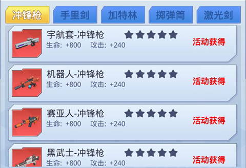 游戏的装备只有武器有独特的时装,每种武器都有多个炫酷时装。