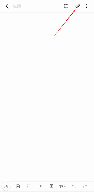 2、添加新笔记后点击右上角的回形针图标