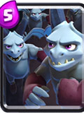 俗称六个核桃,外形就像六只烦人的苍蝇,虽然弱点很多,但能克制的兵种更多是这张卡牌的优势所在,常见的地面推塔兵种如王子、野猪和巨人,在亡灵大军面前都抗不了几秒,最重要的是可以解决烦人的气球,和飞龙宝宝单挑有来有回,在没有其他兵种干扰的情况下,也能磨掉不少塔的血量