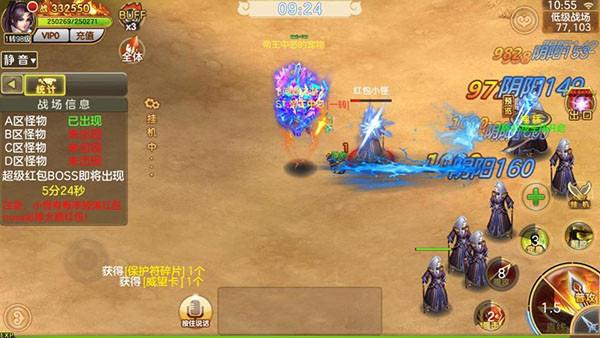 畅爽pvp,圣域争霸跨服乱斗,享受远征其他服务器的激斗;全自由热血战斗随时开打,野外激战激情无限,攻城略地再现王者风范,全服登顶坐享海量奖励,轻松成就不朽霸业。