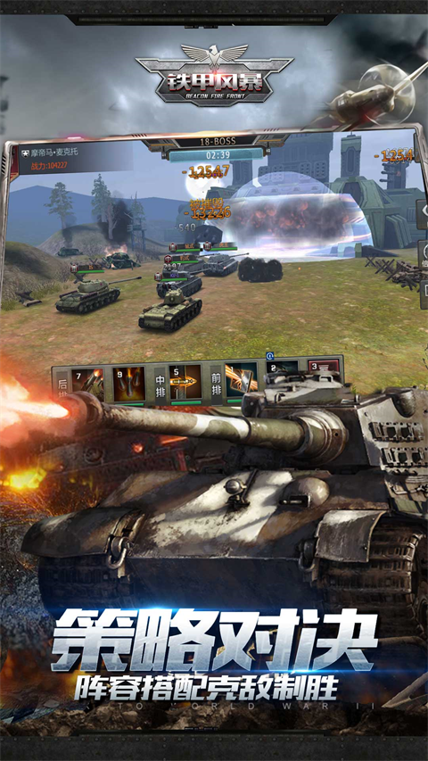 3、在获取了机甲后,如何排兵布阵就成了一大难题。在《铁甲风暴》当中,每场战斗我们最多可以上阵9台机甲,并分布在3乘3的战场上,前排的坦克会更容易承受敌方的火力,而后方的坦克则更多承担输出的重任。