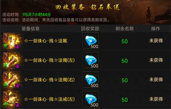 1、装备回收换钻石,零氪也能上榜一;