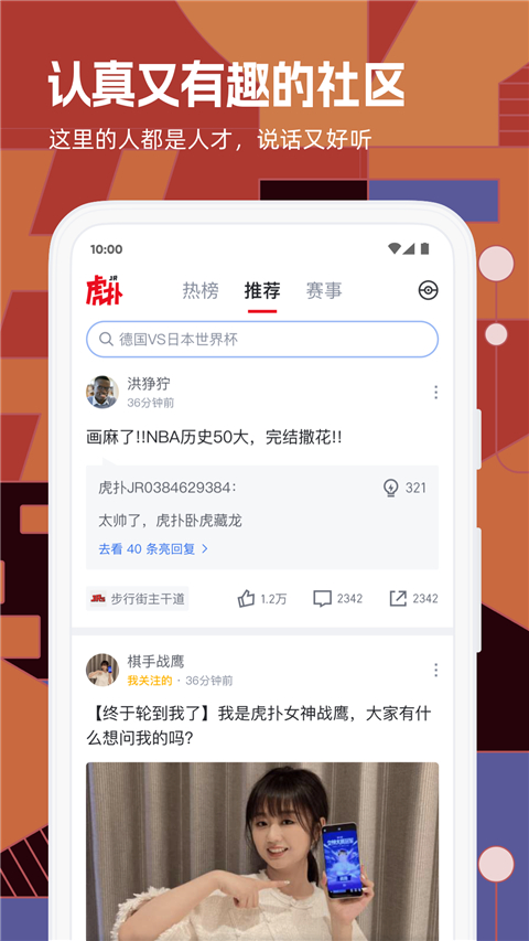 虎扑是一个热闹的电竞社区。在这里你可以获取大量的一手游戏资讯,与百万游戏迷共享自己的竞技态度和游戏人生!在这里,你可以与众多玩家们讨论游戏心得、分享比赛见解,更有职业战队、顶级主播、天梯大神常驻做客,与大家真诚交流,手把手教你玩转游戏。