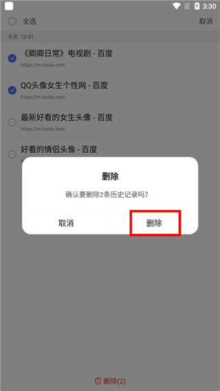 3、长按你浏览过的历史记录;