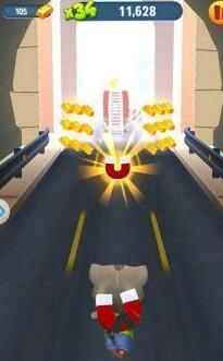 怎样才能在短时间内收集到更多金条很简单,用“磁铁”这个道具可以把界面中所有金条“吸”过来,因此,只要当前行进路线上不出现大型障碍物,玩家无需变道也能收集到很多金条。不过,磁铁与头盔一样,都只能在限定时间内发挥作用,玩家可以通过升级角色的“磁铁持续时间”属性,获得更长久的“吸金”效果。