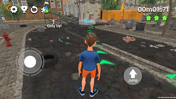 only up这款端游可谓是火遍全网了!于是各大游戏平台纷纷上架手机版,但在这些游戏里,还原度最高的还是本次小编带来的onlyup官方正版手游——OnlyUp3D!无论是场景画风的构造设计,还是不断跳跃地天空跑酷机制,这款游戏都完美还原了端游中的设定,满足了手机玩家的各种期待!在这里,玩家依然是控制一名小男孩,通过跳跃、攀爬各种障碍,不断向上前进!但值得注意的是,地图内有很多看似距离很近的“陷阱”,你要时刻注意这些陷阱,不然掉下去之后又要继续爬了。