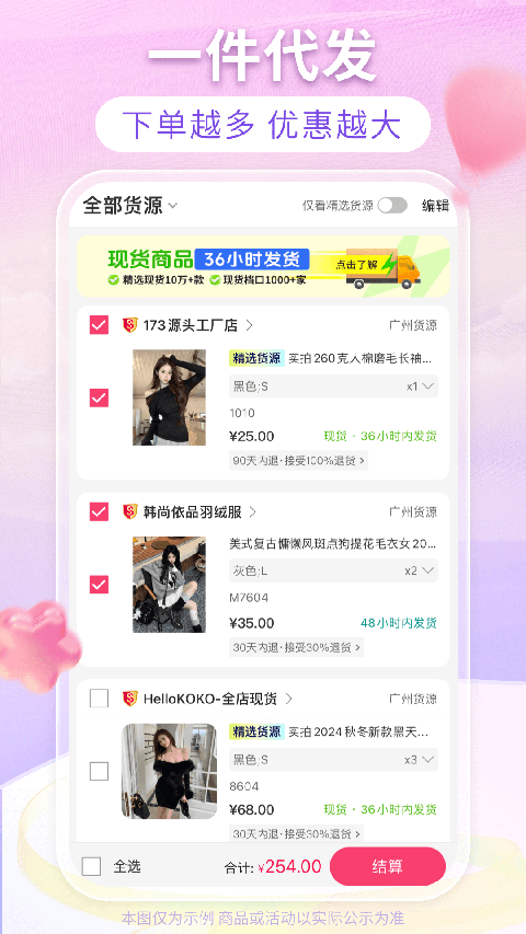 而且这个app的功能也太强大了吧!一件代发、一键铺货到各大平台,还有专业的物流团队帮你搞定所有发货问题。不管是实体店还是网店店主,甚至是朋友圈卖家,都能在这里找到适合自己的货源。特别是“一件起批”的功能,真的解决了囤货的烦恼!