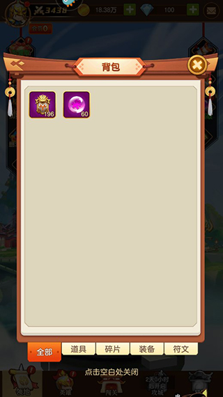 玩家点击右上角背包,即可查看自己拥有的物品。