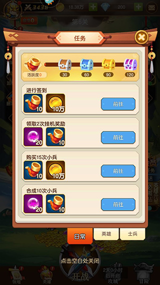 玩家点击右上角任务即可进入任务界面,完成任务可以获得大量奖励。
