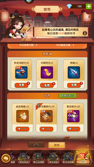 玩家在领地界面,点击坊市,即可进入坊市界面,在坊市可以领取非常多的免费奖励。