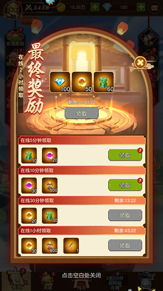 玩家点击左上角的在线奖励,可以领取在线时长的奖励,非常丰富。