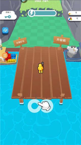 1、下载进入矿工大冒险游戏,滑动屏幕即可进行移动;