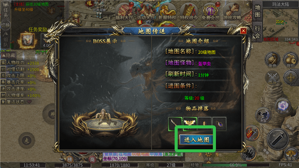 2、点击进入地图打怪。