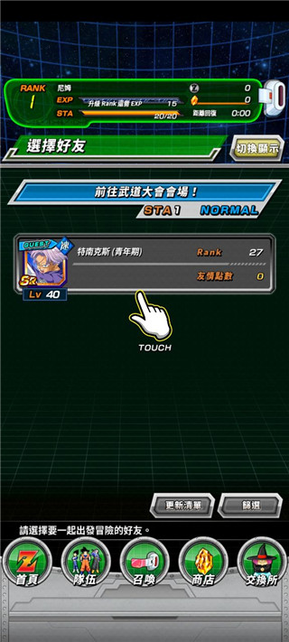 1、进入龙珠z爆裂大战游戏,进行新手教程,按照提示点击