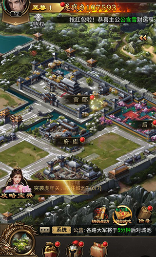玩家在主城可以进行将领抽取、约会后宫佳丽、铁匠铺打造武器等