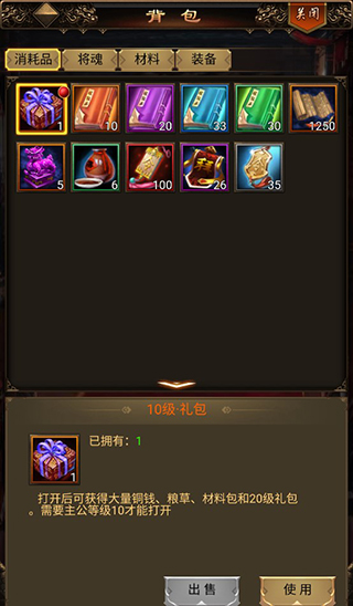 玩家点击下方背包,可以查看自己获得的物品并使用