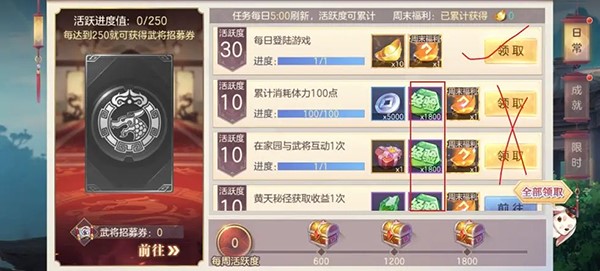 体力记得领取一下,注意时间,当天补领需要50元宝。