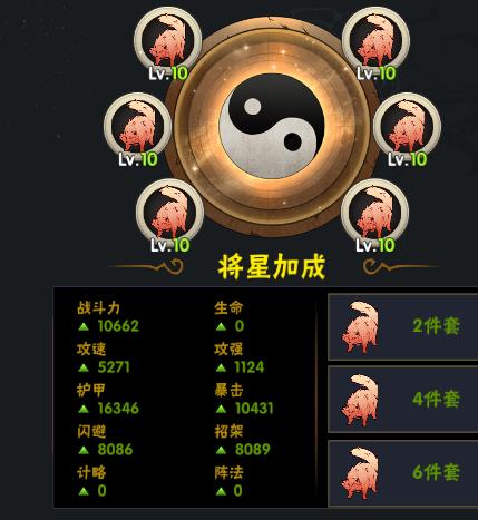 关羽是这款游戏最能看出你的游戏时长的英雄,因为关羽的将星很难到达极致,也是将星配法最多的SSR英雄,将星的配法一会再说先说一下关羽的属性。关羽只有一技能有攻强的加成其他技能并没有加成,所以武器和法宝也只能选择攻强加成。护甲是唯一一个需要考虑的装备。护甲的加成属性要和将星的保持一致,才能使加成到达最高。