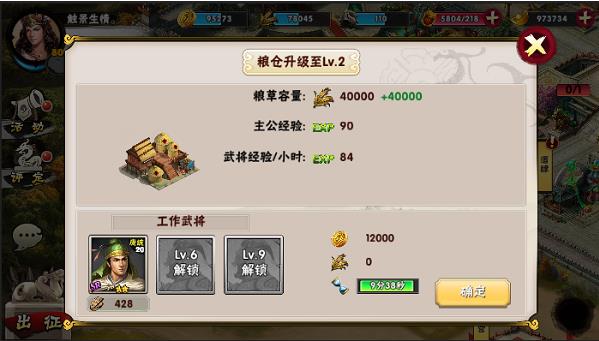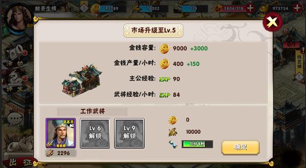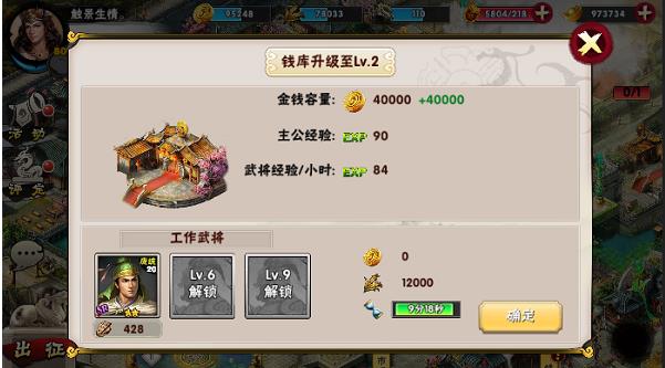 除了主城外可以扩大金钱容量和粮草容量的分别还有金库和粮仓。金钱和粮草的产出则分别对应着市场和征粮所。其中市场除了能产出金钱以外还可以进行金钱和粮食的互换