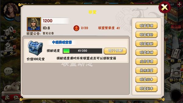 2.联盟功能:联盟管理、联盟援助、联盟捐献、联盟商铺、成员管理、其他联盟、联盟战争、联盟副本等。