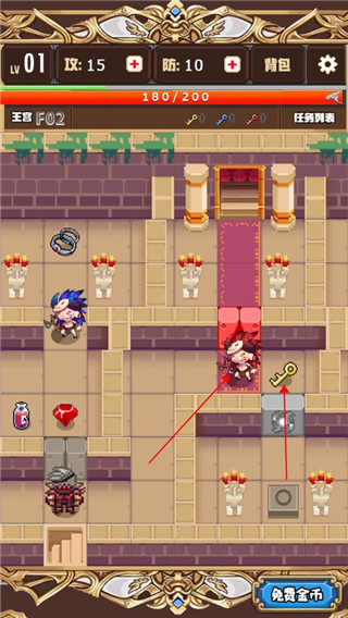 3、进入下一层后,击败红色小恶魔获得黄色钥匙,之后返回上一层。