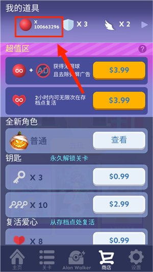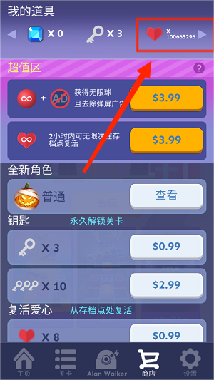 游戏已经内置了无限数量的球和心,球的作用是用来进行游戏,如果数量不足则无法开始游戏