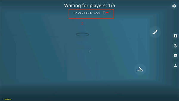 开始加载游戏,在游戏最上方的一串代码就是房间号,可以点箭头所指的按钮来复制分享给朋友。