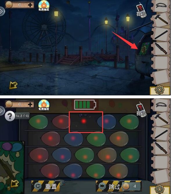 5、然后去打气球,获得钥匙,气球一共要打四次,注意x轴和y轴需要重合,在打气球的窗宽下面还有一个夹子需要拿到;