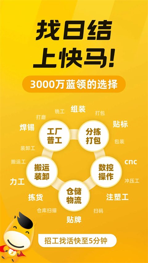 快马日结是安又心网络科技有限公司 研发运营的为蓝领求职者找工作服务平台。