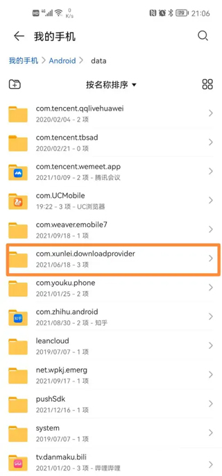 5、下拉,打开“com.xunlei.downloadprovider”文件夹;