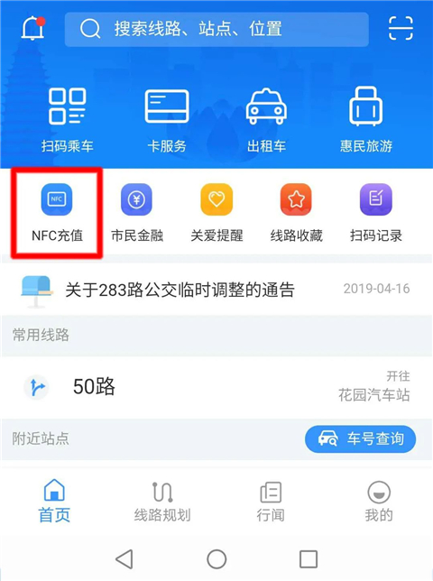 2、进入“常州行”APP首页,点击【NFC充值】,打开充值页面。