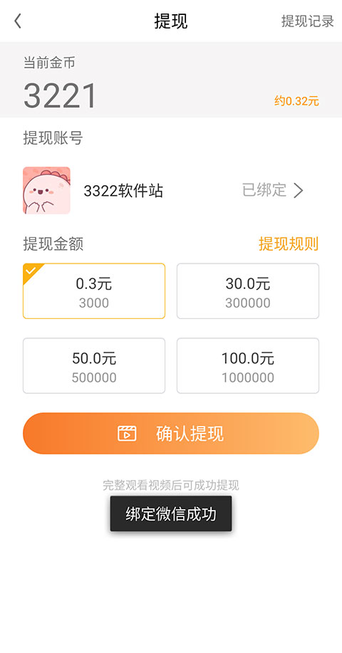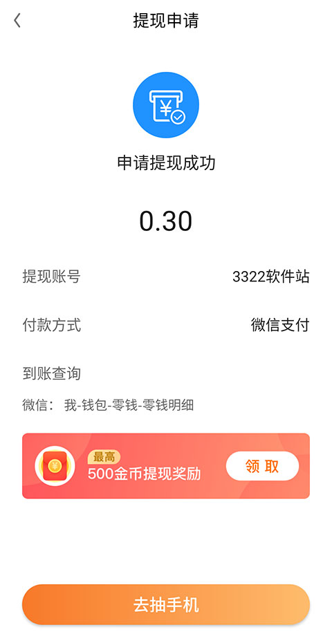 3、小额提现,无门槛秒到账。