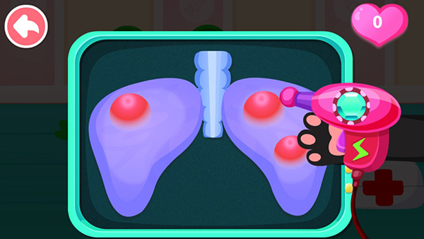 选择好器械就可以开始给怪物病人治病啦!可以先将器械放在病人身体上检查,检查到病因之后就可以进入治疗,清除掉这些可恶的病毒。