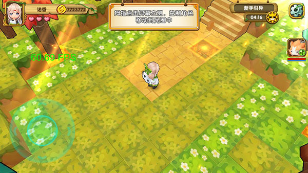 3、正式进入游戏可看到屏幕的左下方有着虚拟摇杆,通过摇杆操控人物前进;