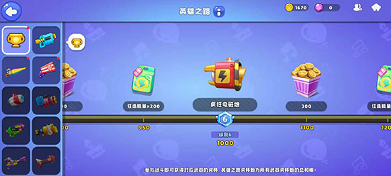 首先就是第一种,在冠军之路中的奖励,像品质好的,史诗级的危险高压枪、拳皇手套、稀有级的疯狂电磁炮等,这些都可以在这里获得,当然品质越高的所需要的奖杯数量也就会越高。