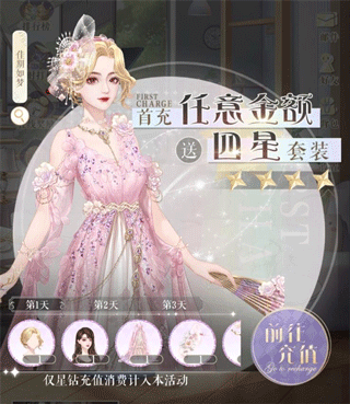 3、也可以参与首充礼包哦,可以直接获得一整套四星时装,后续两天还可获得时装十连抽和猫咪十连抽。
