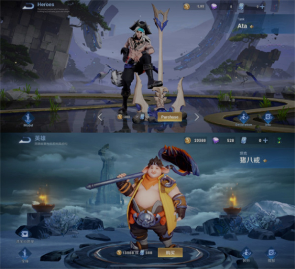 但也有些例外,就是国服的天蓬元帅猪八戒却在国际服中被调整为了手握船锚的Ata(阿塔)。