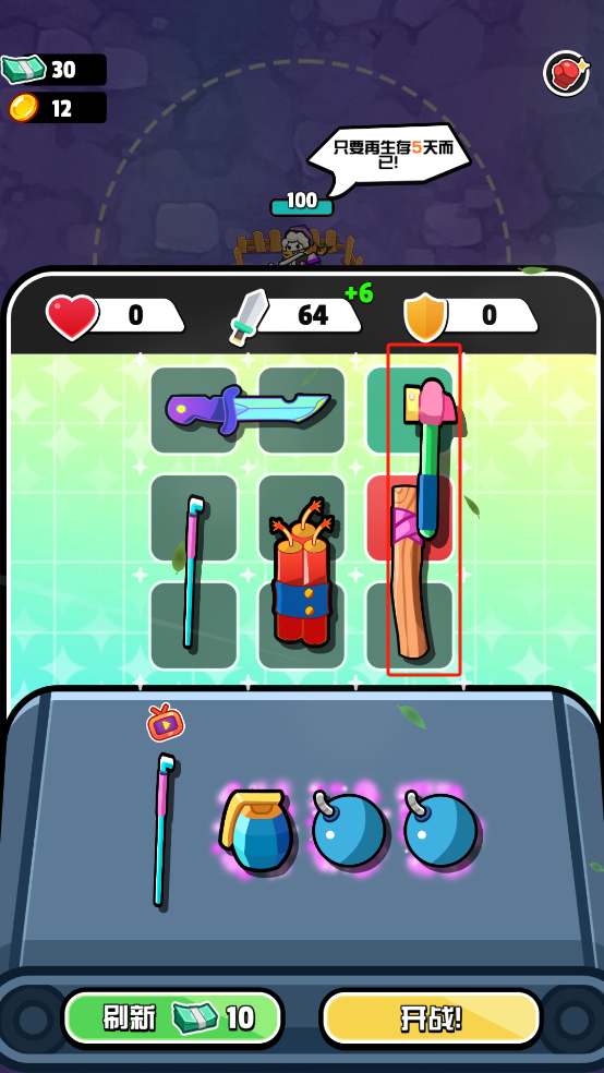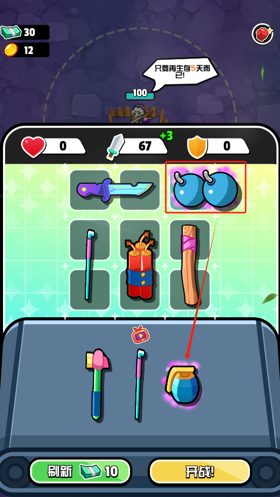 2、玩家需要将背包里的武器放到格子里来增加自己的伤害