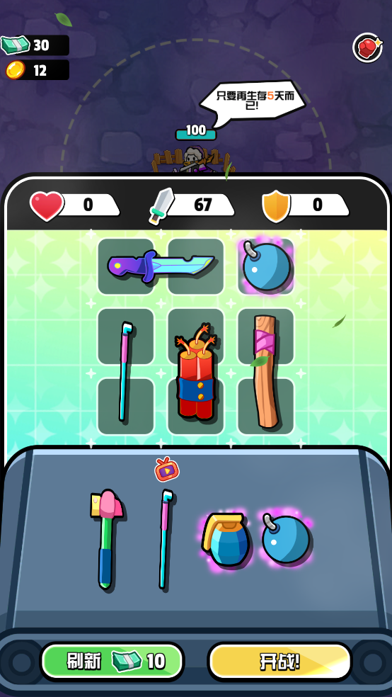 《别碰我的栅栏》是一款末日生存肉鸽手游,你扮演的幸存者要在荒野中建造简陋的栅栏,抵御一波波变异魔物的袭击。游戏的核心玩法就是通过收集、合成和摆放武器来提升自己的战斗能力,每把武器都可以自由组合,甚至能做出威力更大的道具!比如两个地雷可以合成更强大的炸药,这种DIY的感觉真的挺有意思的。