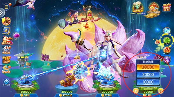 BOOS鱼:像洛神、苏妲己、天命罗盘等等。分值可达几百上千分。洛神被击中倍率最高8700倍,苏妲己携带大量金币。